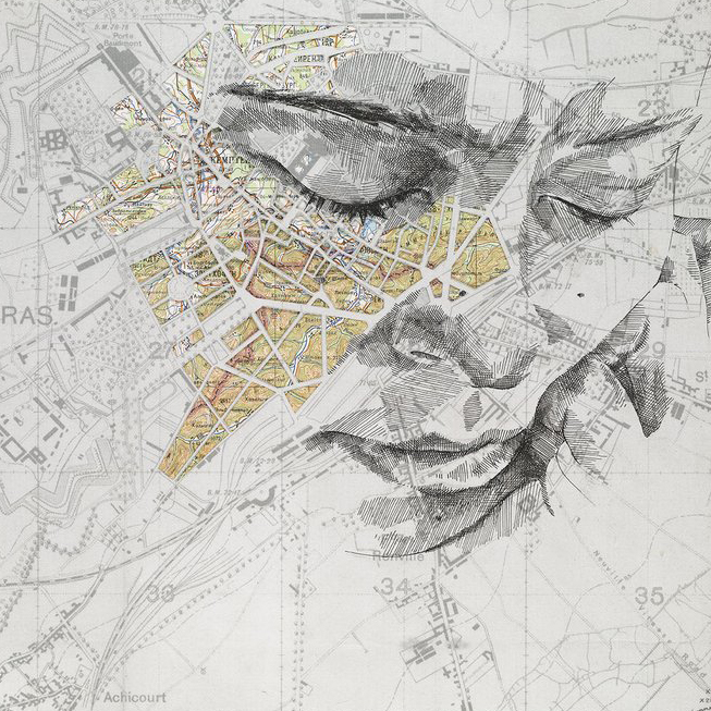 Transforming old paper maps into portraits, one line at a time πŸ—ΊοΈβœοΈ Audio is from my appearance on BBC Radio Solent, where I was invited on to chat about my portrait work for Universal Music and the John Lennon Estate