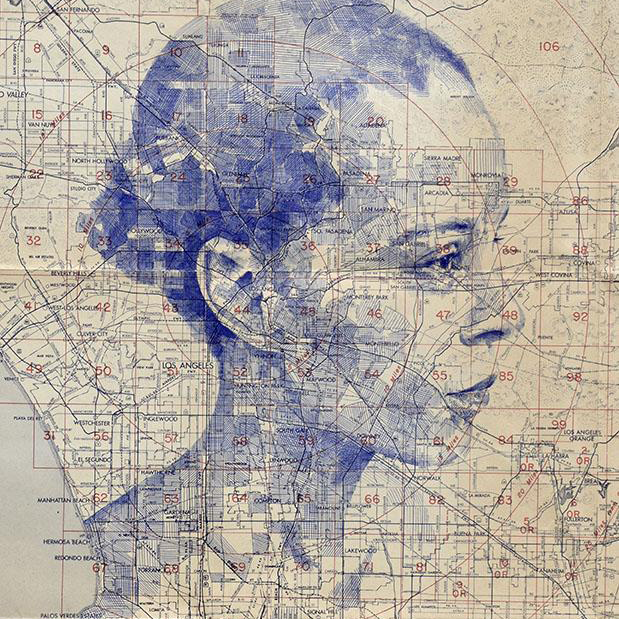 This is a bit different to the crosshatching you usually see here, but still follows the same concept of turning maps into portraits.