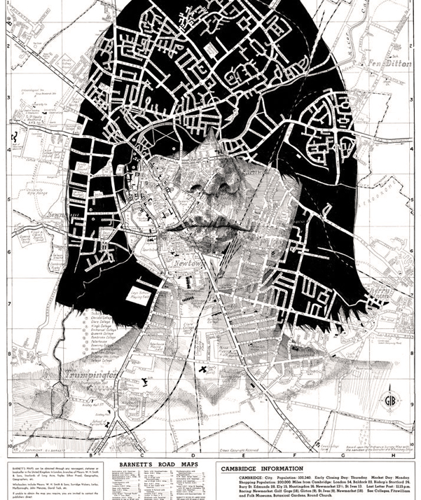 This is a bit different to the crosshatching you usually see here, but still follows the same concept of turning maps into portraits.